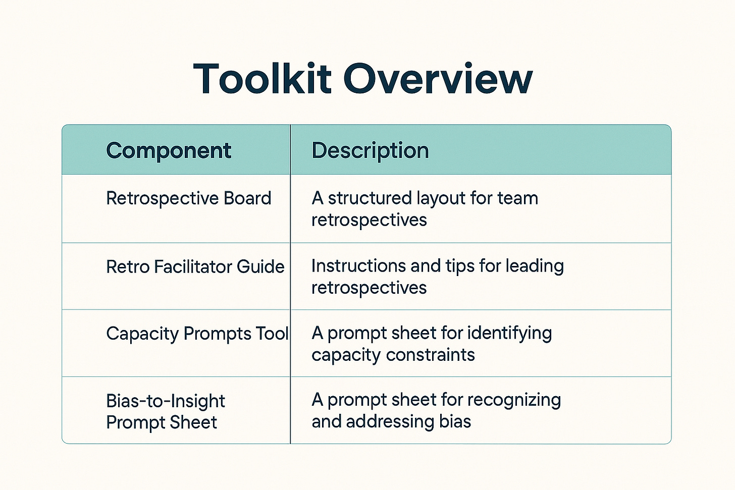 Most retrospectives skim the surface — teams reflect on what happened, log some action items, and move on. The Retrospective System Board breaks this cycle by guiding teams through four critical layers of insight. It starts with Surface Reflection, capturing blockers, events, and wins. From there, it moves to Pattern Recognition, helping teams spot recurring issues and hidden assumptions. The third layer, Emotional & Capacity, surfaces how the team is feeling — energy, overload, safety — and tracks this over time. Finally, Experiment Design turns all of that into small, safe-to-fail changes for the next sprint. Each quadrant feeds the next, transforming your retro from a ritual into a repeatable system for continuous improvement.
